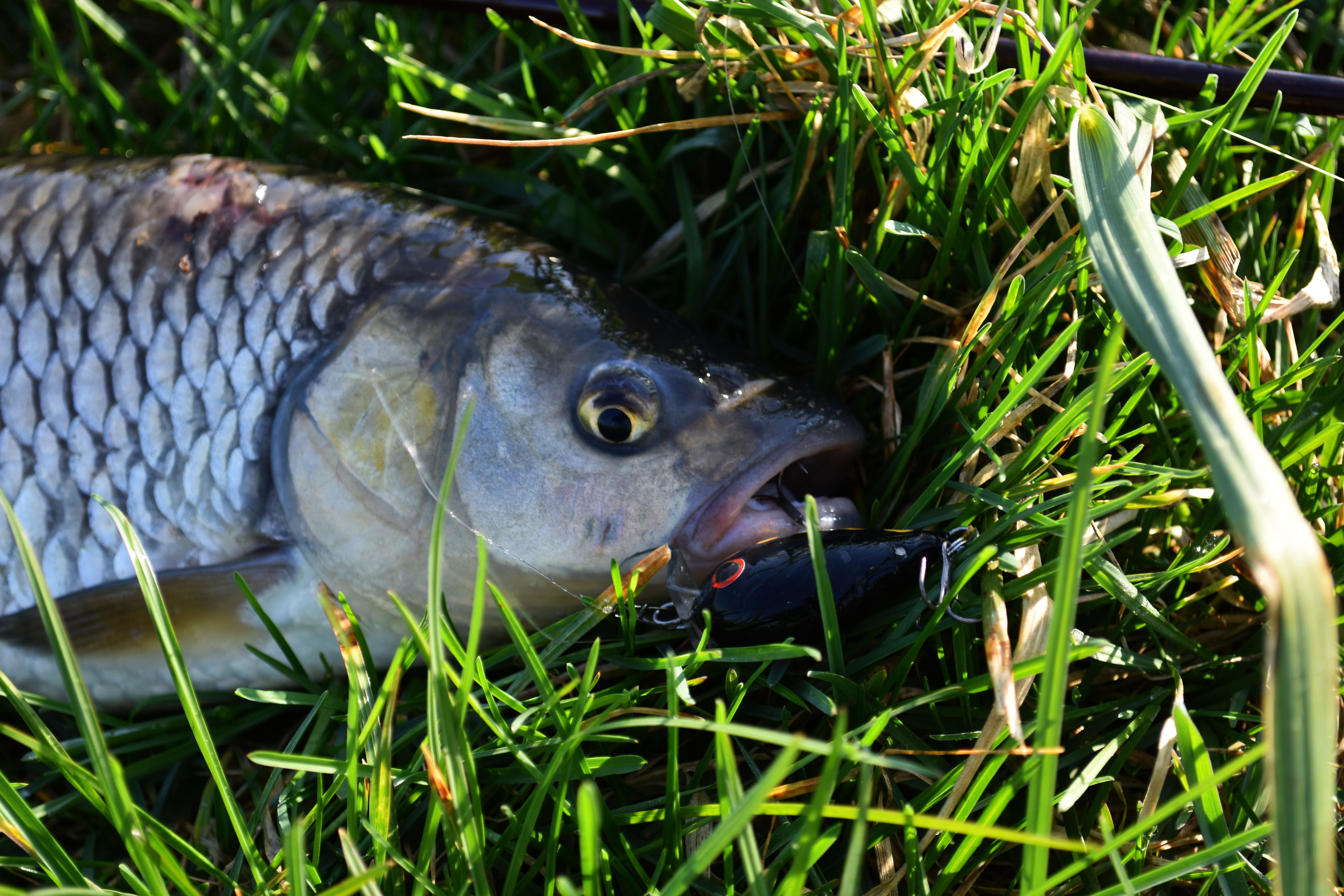 Lementem a hídlábhoz dobtam kettőt lefelé, kettőt szembe, kettőt felfelé. Na jó akkor talán a hatodik dobásra lett meg. Ledurrantotta a folyással egy irányba húzott kis cranket.