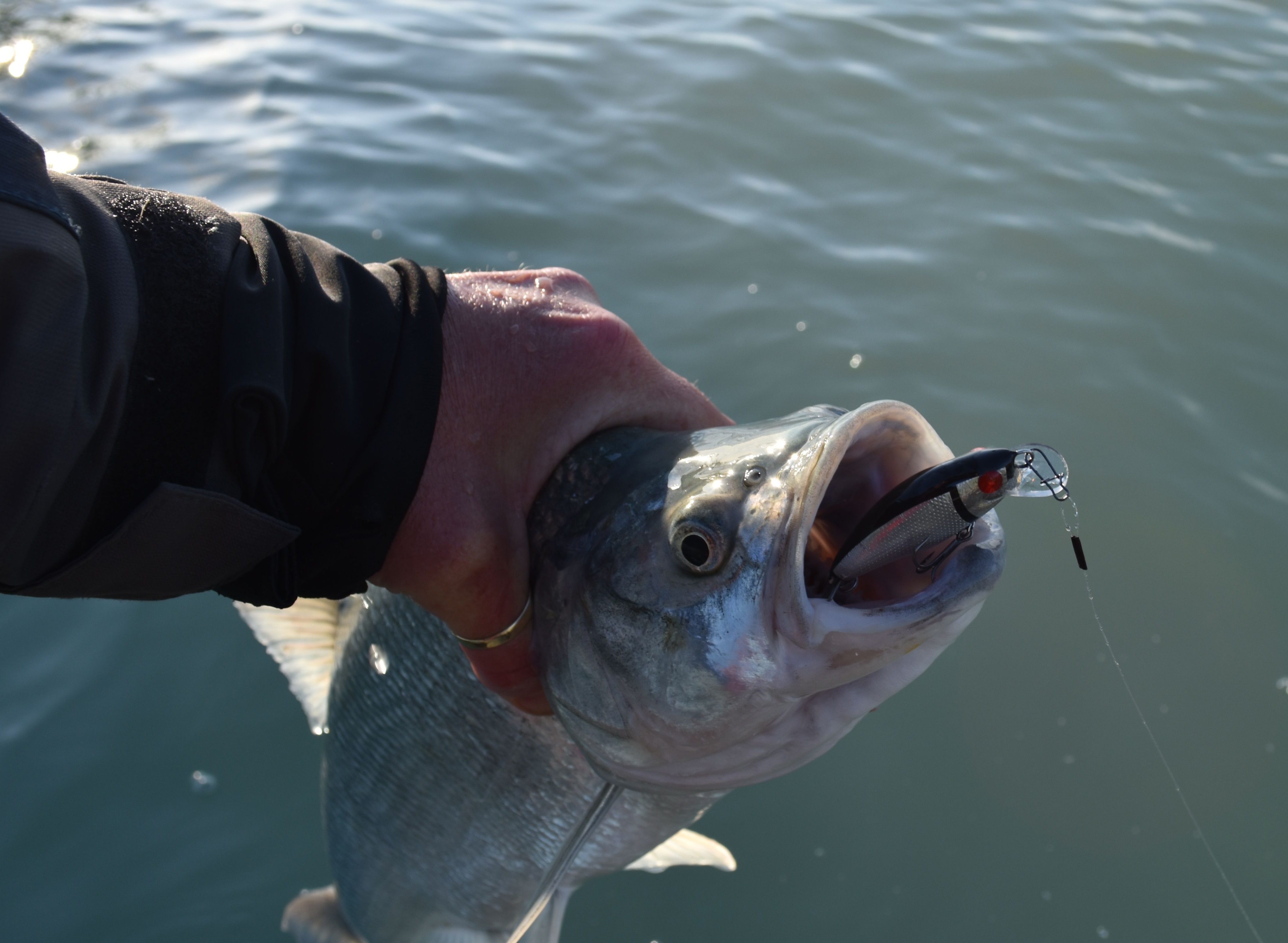 A második helyen 3 hal volt kézben, 3 kapásból. A harmadik pályán az első 2 kapást elcsesztem, aztán rájöttem, hogy a sekély vízben felfelé tartott bottal, közepes tempóban húzott humpback lesz a nyerő.