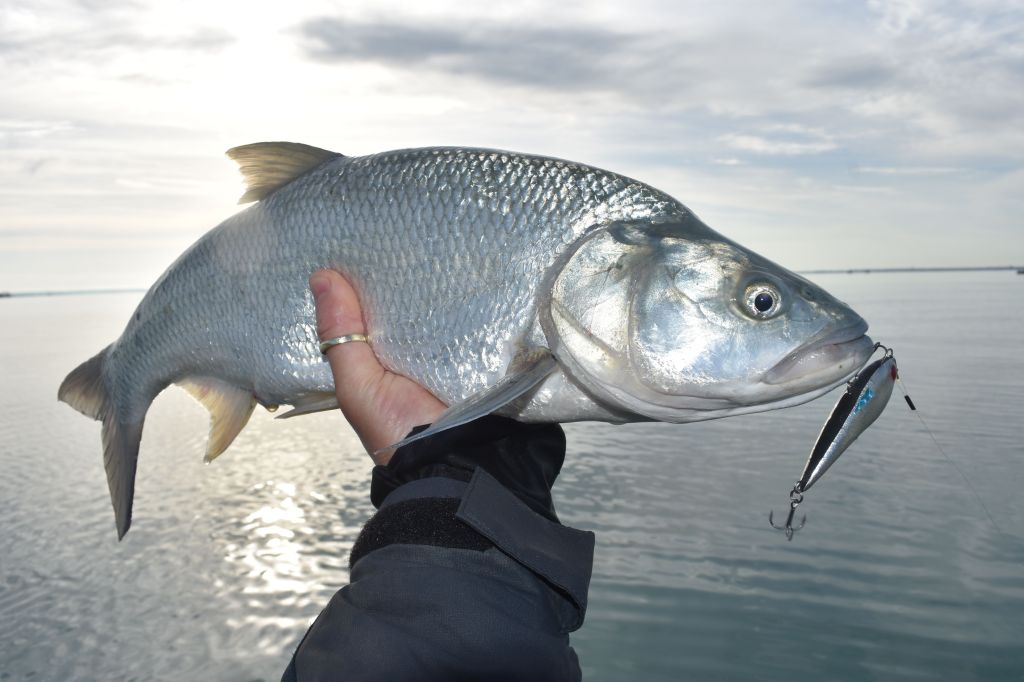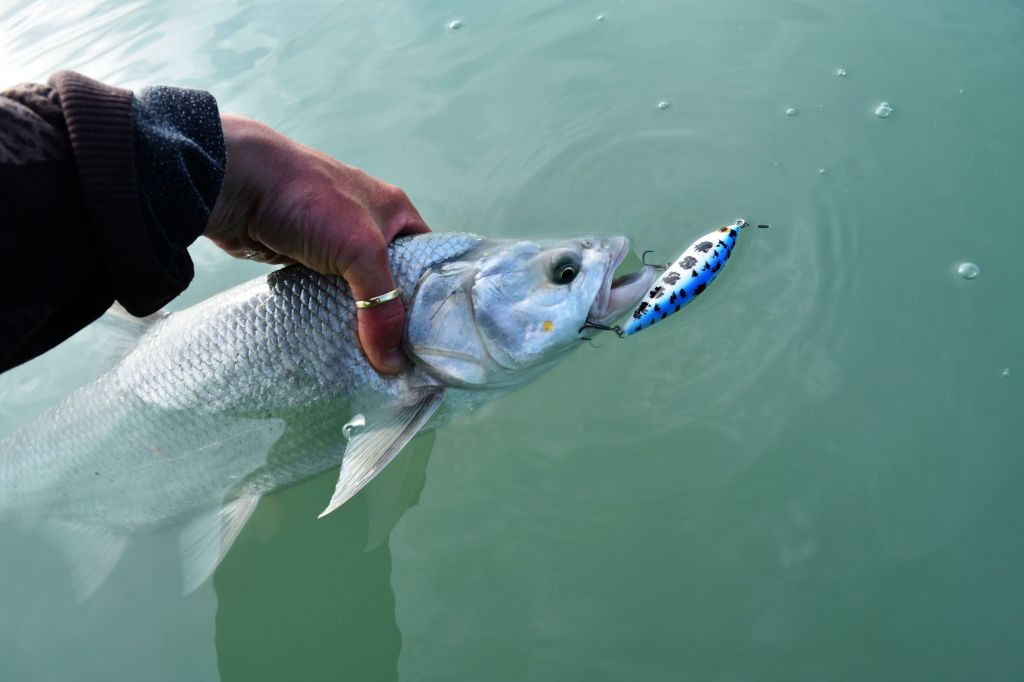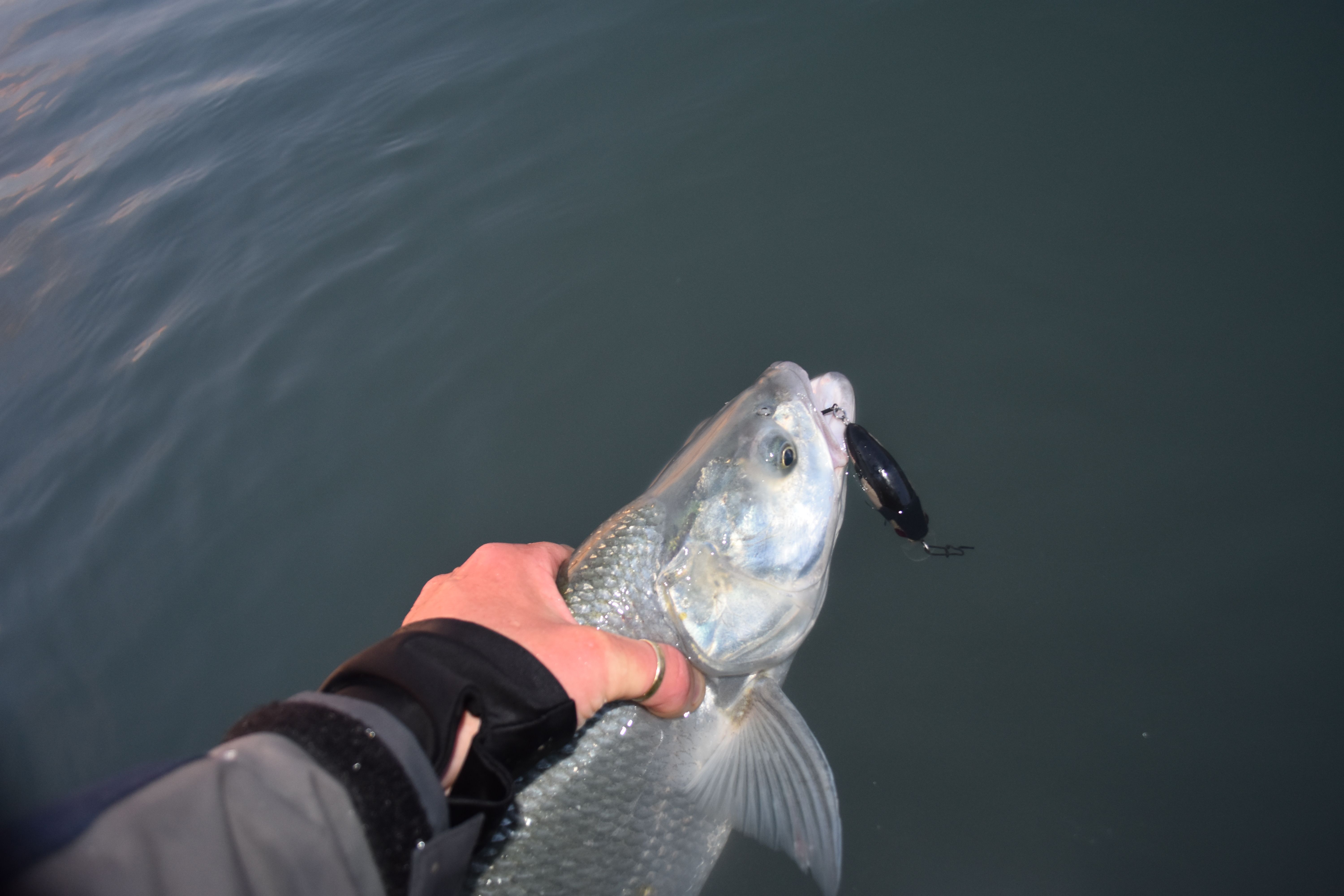 Semmi jele nem volt ragadozóknak, aztán első dobásra mégis kicsapta a felszíni ketyerét, majd úgy duplázta be, hogy nem akadt meg. Második dobásra csak egy burvány mutatta a balint a wobbler alatt, aztán már nem kellett neki semmi.