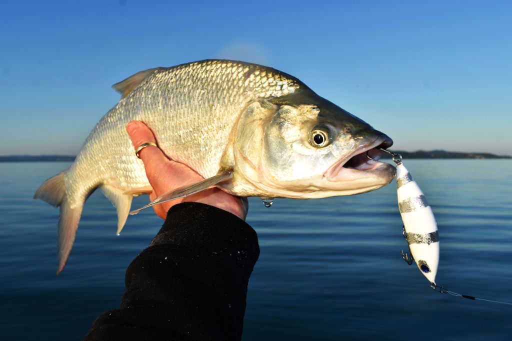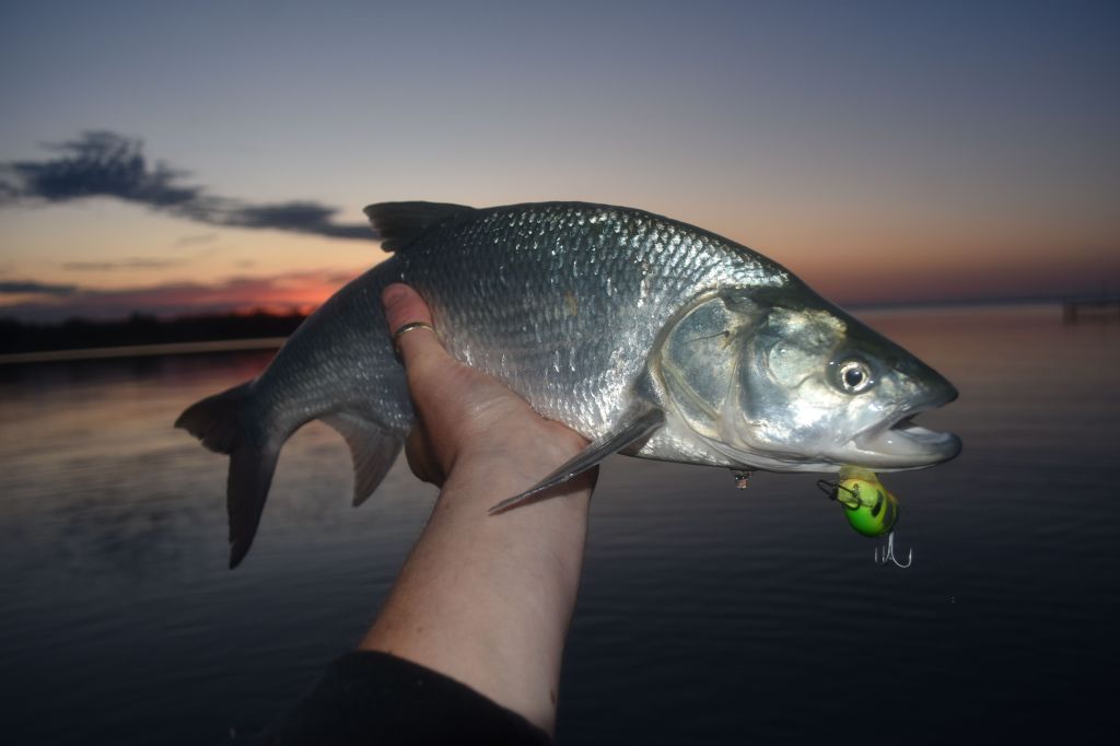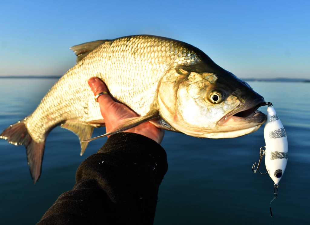 A szomszéd öbölben elkezdett dolgozni egy balin. Addig – addig pusztította a szélhajtókat, míg beindítottam a motort és rámentem. A harcsa veszély miatt nem mertem a kispecát elővenni, amivel balinozni szoktam, így a 18 grammos finezze akadt a kezembe. Előző nap csévéltem rá zsír új tízes madzagot és krimpeltem rá negyvenes előkét .