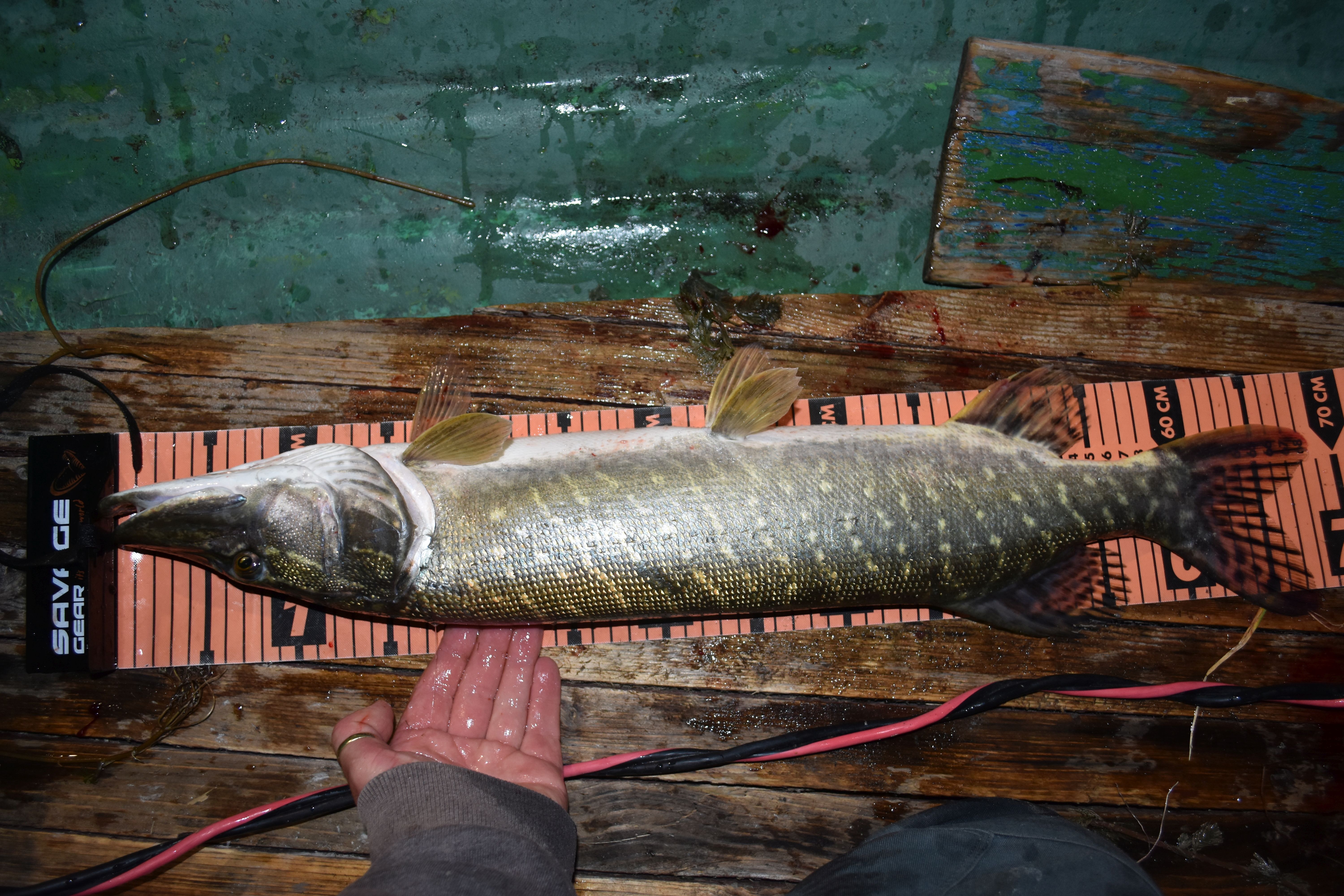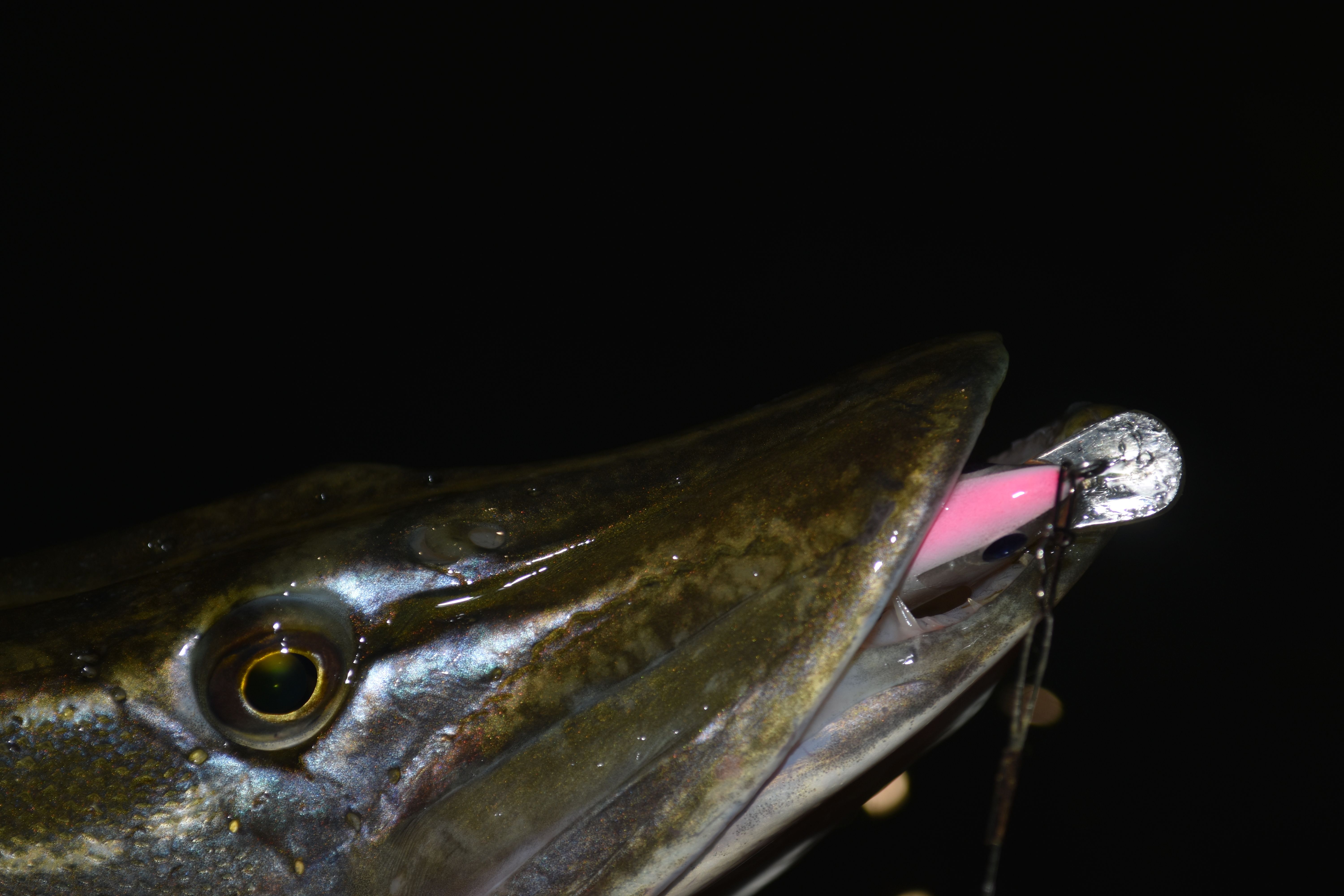Több kisebb süllő után láttam a fényben, ahogy a hínárból kiforduló árny leszívja a wobbleremet. Annyi fény azért nem volt, hogy biztos legyek benne, de belül tudtam, hogy újabb éjszakai csuka a tettes. 😀
