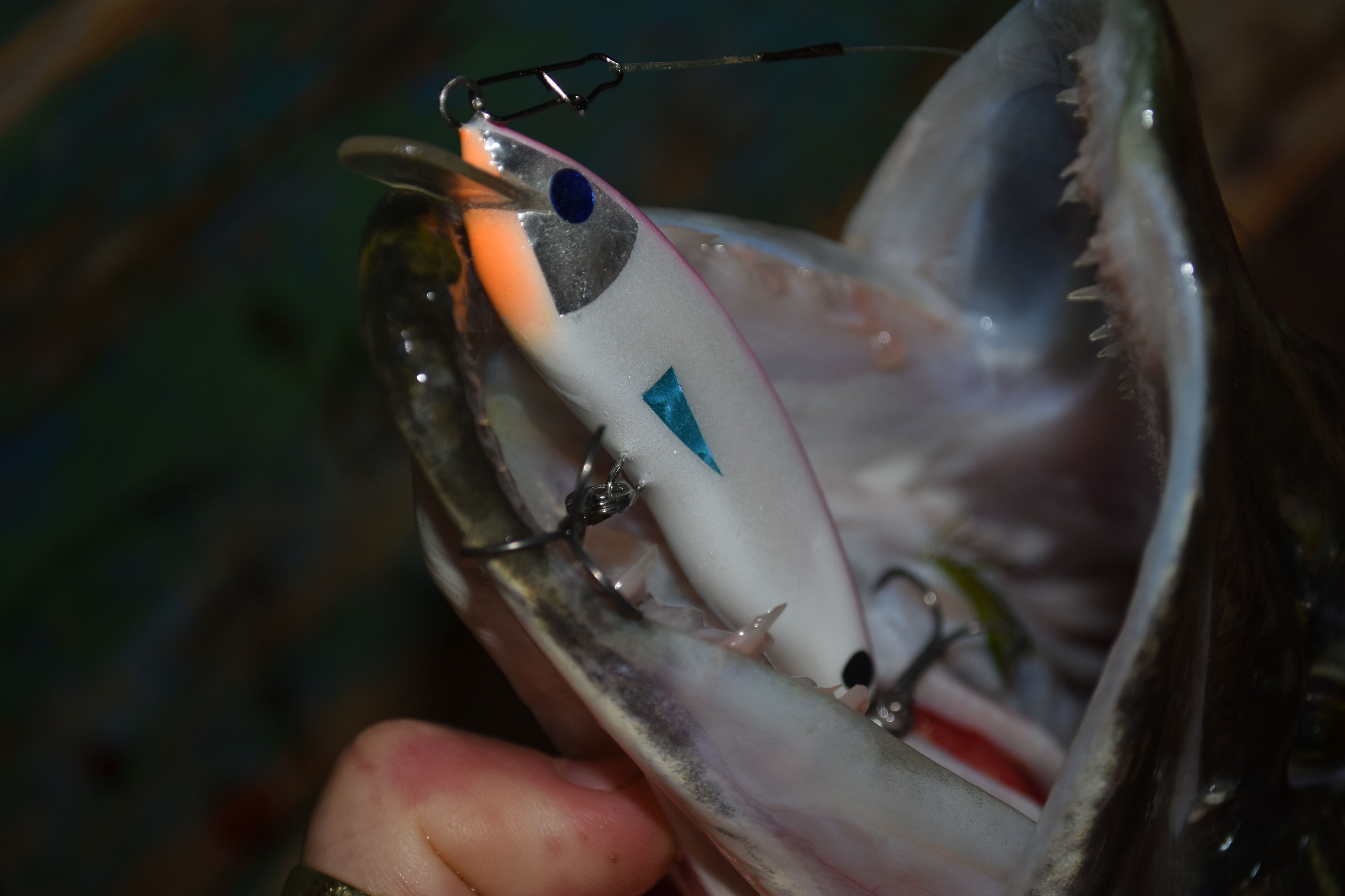 Másodikat dobtam, az új hetes Sauron békával, amikor lecuppantotta felszínről és olyan sebességgel hozta felém, hogy sokáig nem volt kontakt, így félő volt, hogy elvitte a wobblert, de nem így lett. 😀