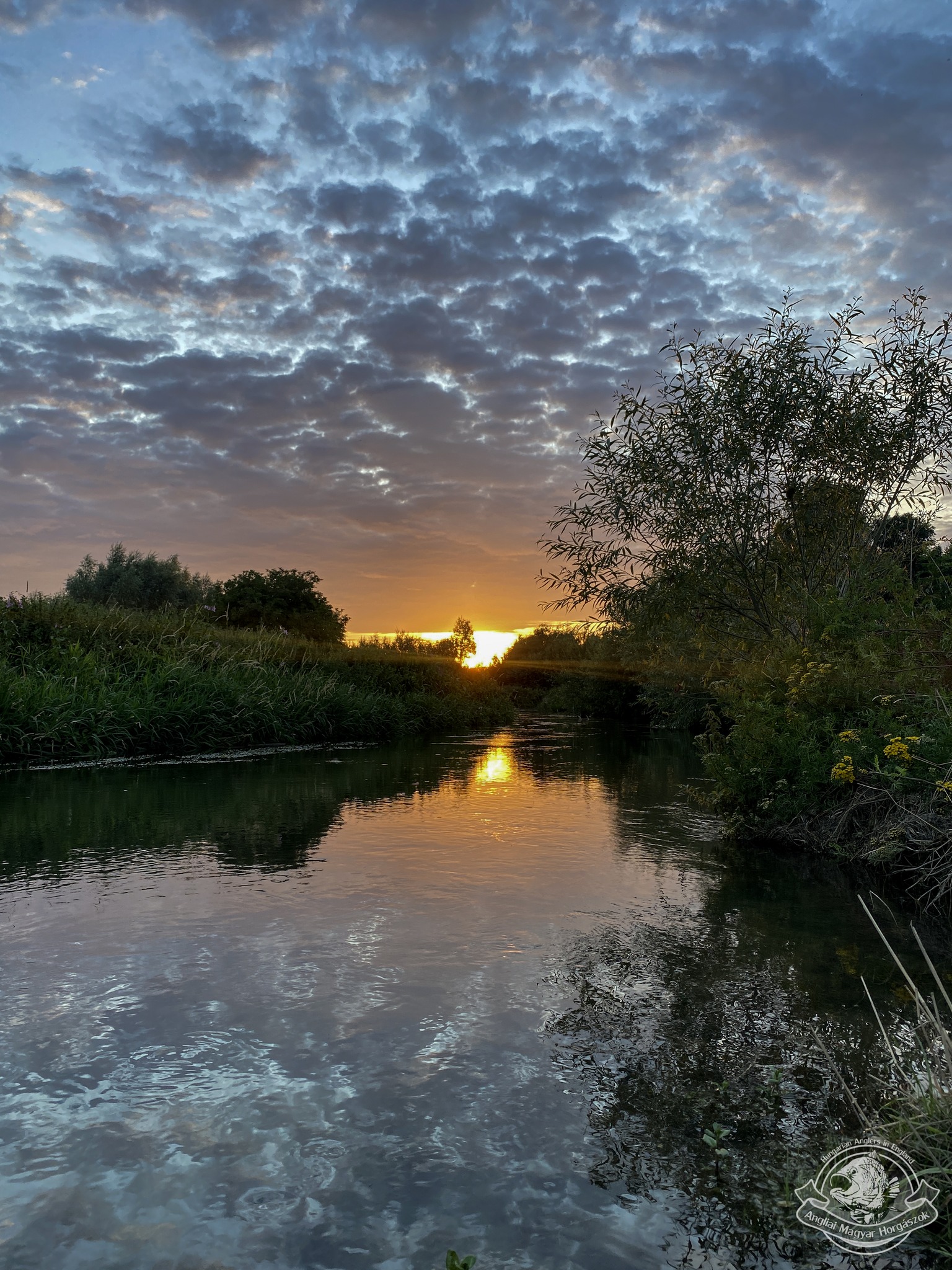 Minden egyes méterrel, amit megteszek a folyóparti fűben, eltűnik egy az egyikből és keletkezik néhány a másikból. Ma az időzítés is tökéletes, hiszen a nap legszebb órájában érkezem. Az alkonyati szél épp csak sorba rendezi a könnyű felhőket, hogy a nap még kedvére eljátszhassa rajtuk kedvenc esti fényjátékát.