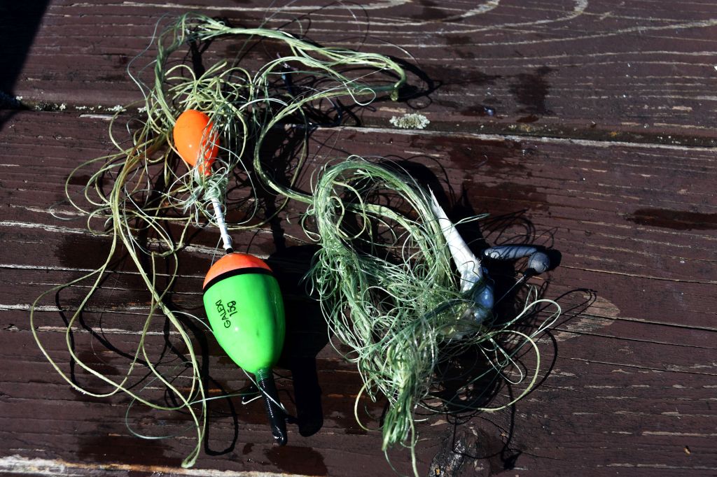 Az ótvar büdös kishal fel volt csúszva az ólom, karabiner kombóra. Szinte folyt már, annyira el volt rohadva. Az egész szerelés iszonyat büdös volt és az úszón is látszott, hogy csóri hal nem reggel óta cipelte magával a koloncot.