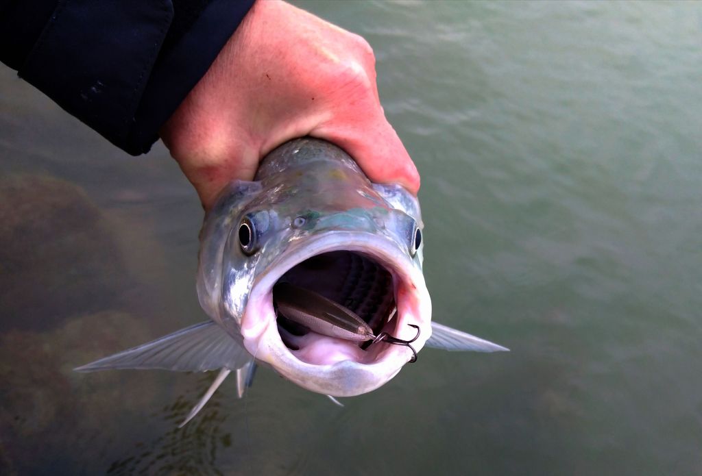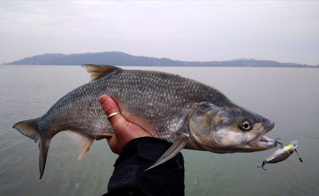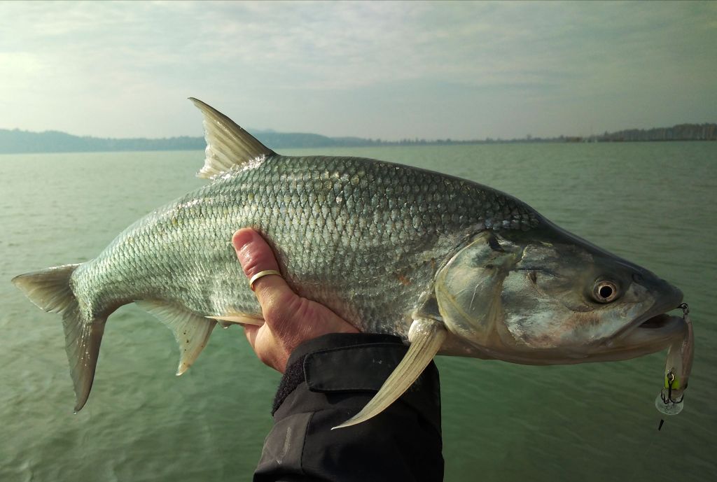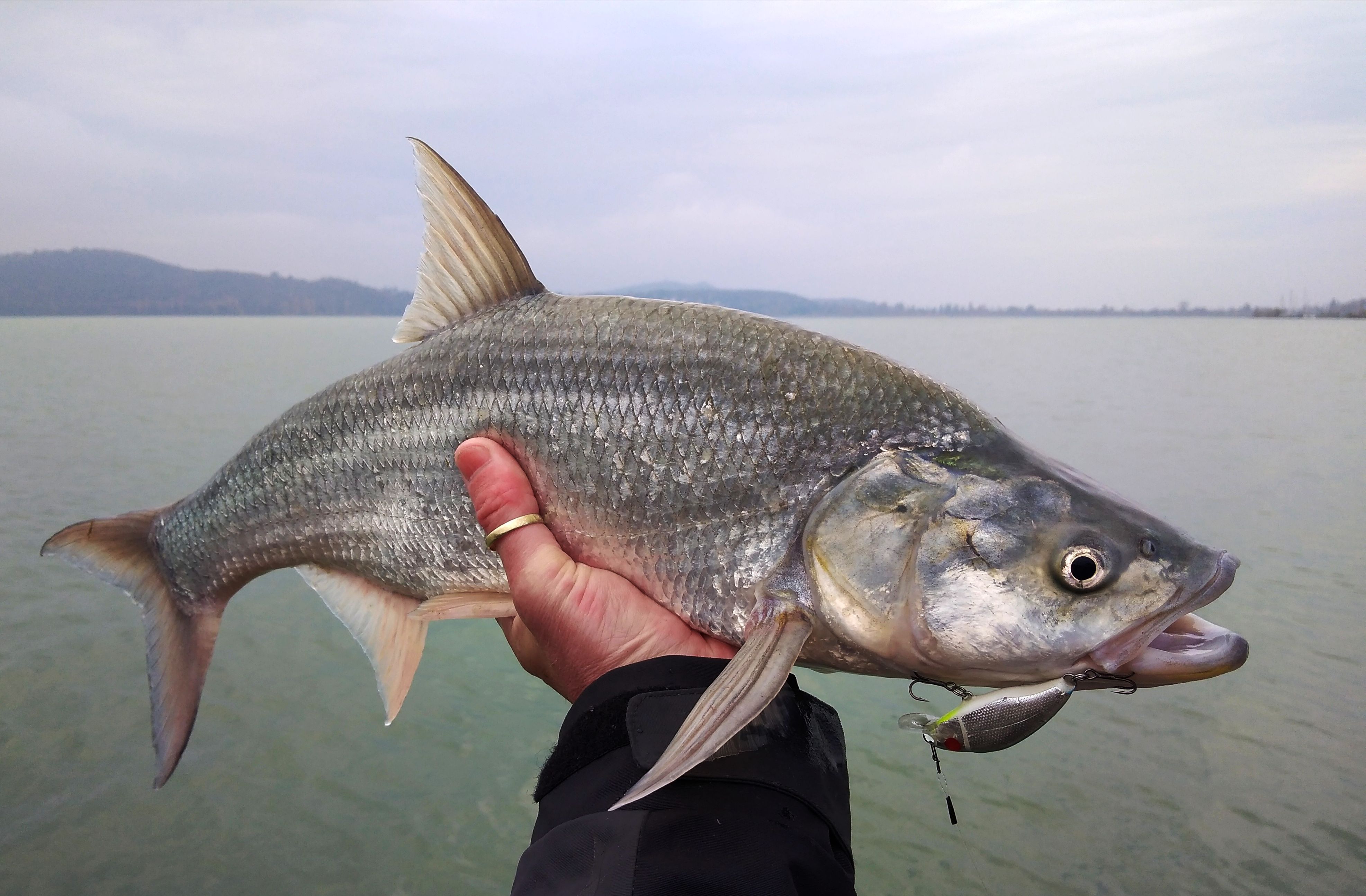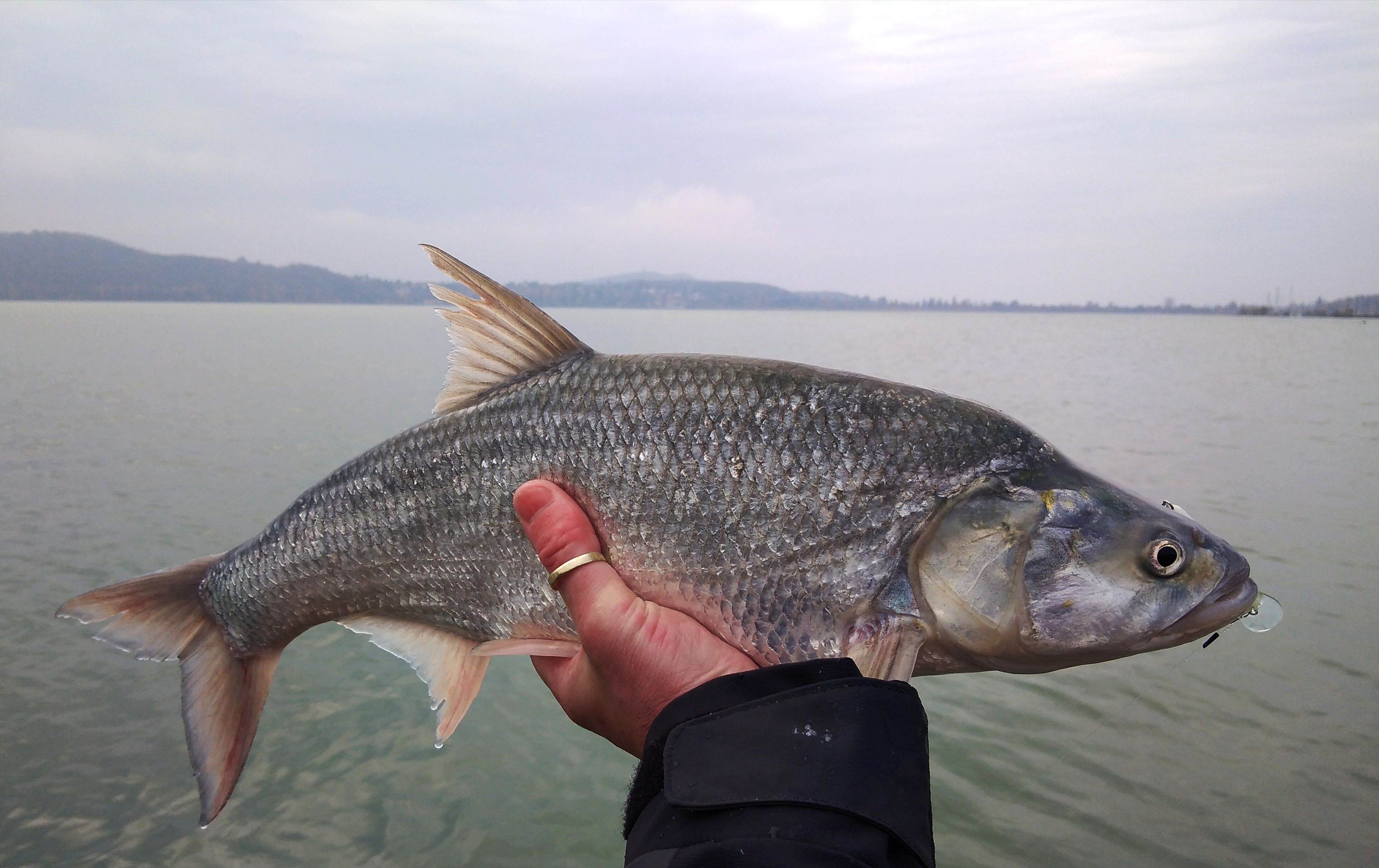 Ráadásul ebben a szituációban nem nagyon volt variálási lehetőségem, hisz a fekete felhőkben úszó, gyufaszál méretű ivadékhalakra leginkább a kis púpos hasonlít és az tudtam elhúzni megfelelő mélységben, a bevontatási technikák variálása mellett.