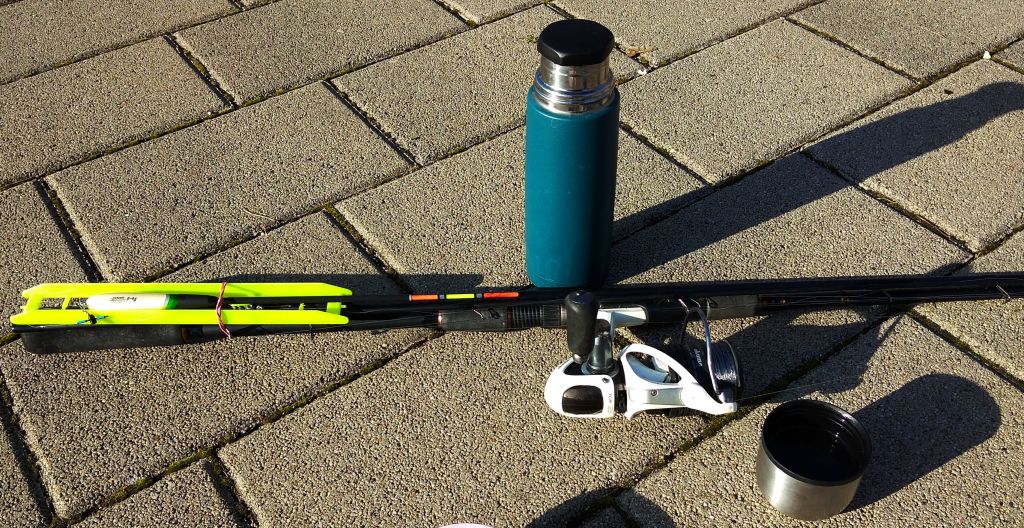 Nosza elő a cuccal. Készítettem gyorsan két szereléket fellétrázva, előszedtem a haltartó hálót, botot – orsót összeraktam és előkerült a télikeszeg pecák elmaradhatatlan kelléke, a diszperzites vödör is. 😀