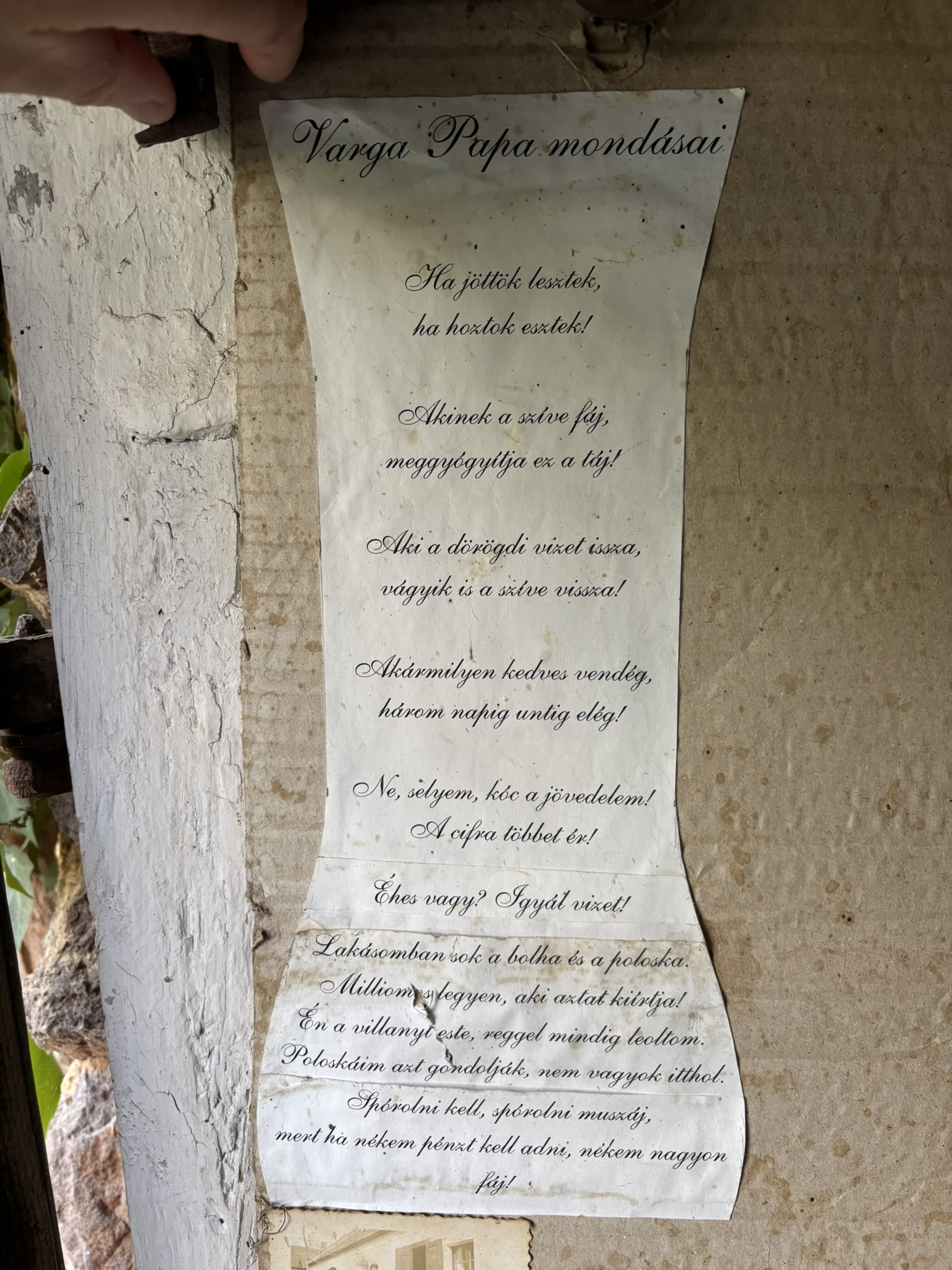 Zsuzsa néni nagyon készséges volt. Elvezetett minket a forráshoz, majd teljesen ismeretlenül beinvitált minket az udvarába és elmesélte nekünk a kis történetét.
