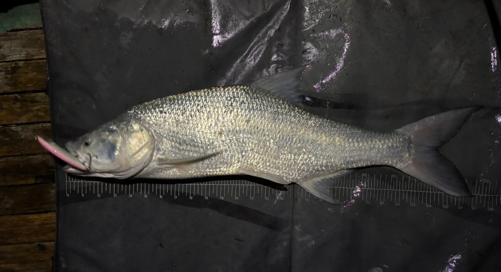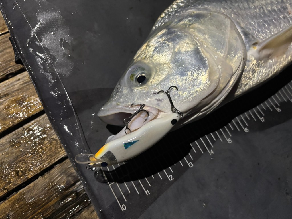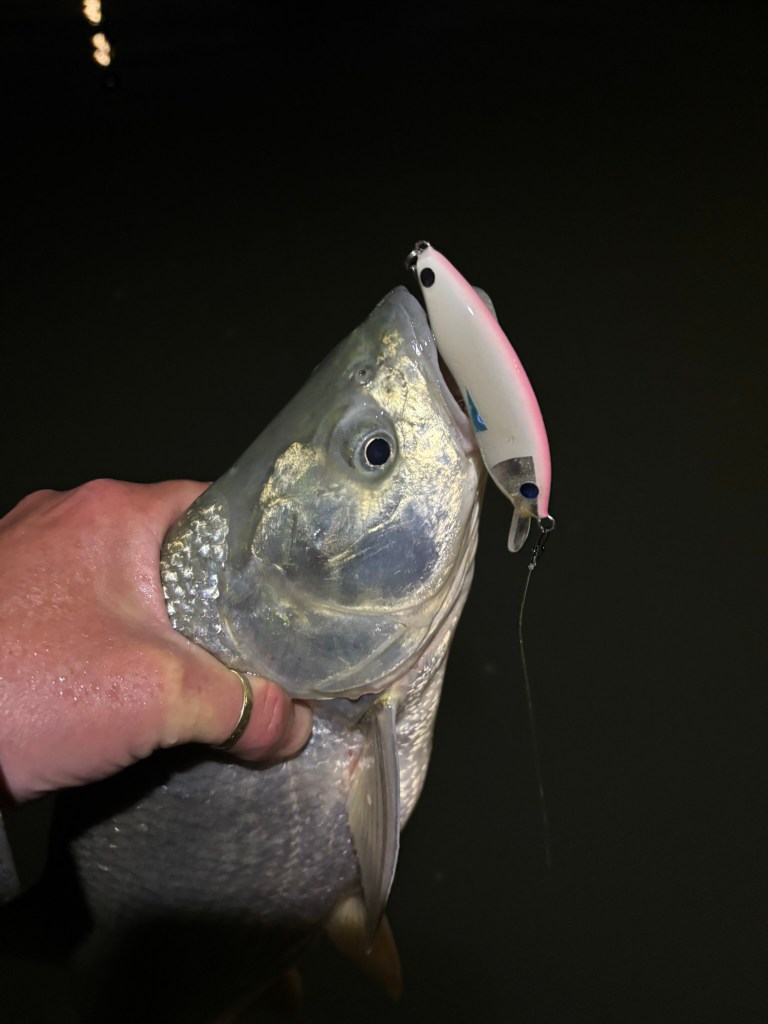 Őszintén szólva, ezen az éjjelen nagyon jól jött, ugyanis – ahogy a képen is látszik – a wobbler két horga mellett kesztyűvel a hal szájába nyúlni, nettó öngyilkosság lett volna. 😀