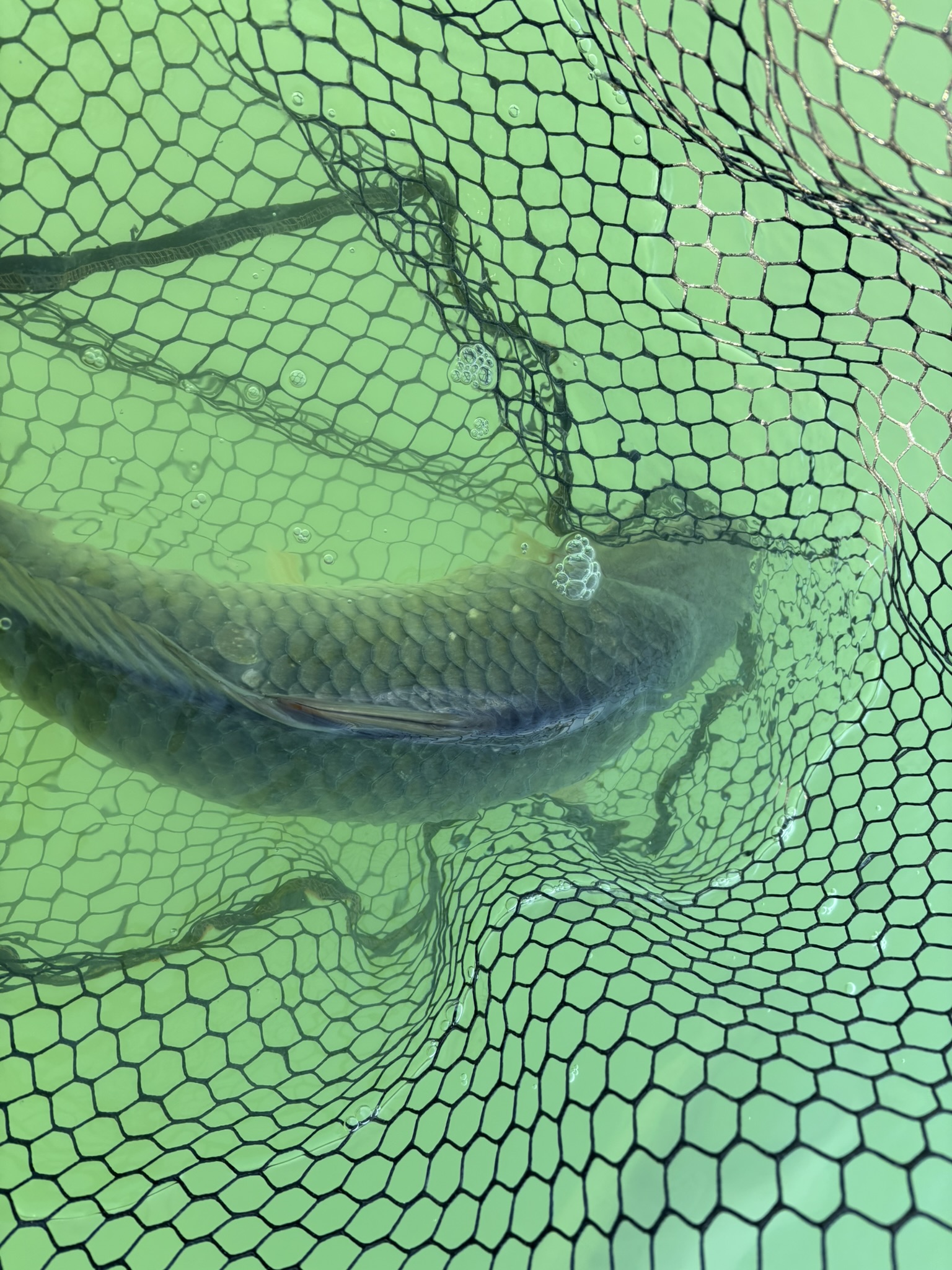Így fél kézzel kinyitottam és bevizeztem a matracot, majd fél kézzel kinyitottam a merítőt és a hal alá toltam.