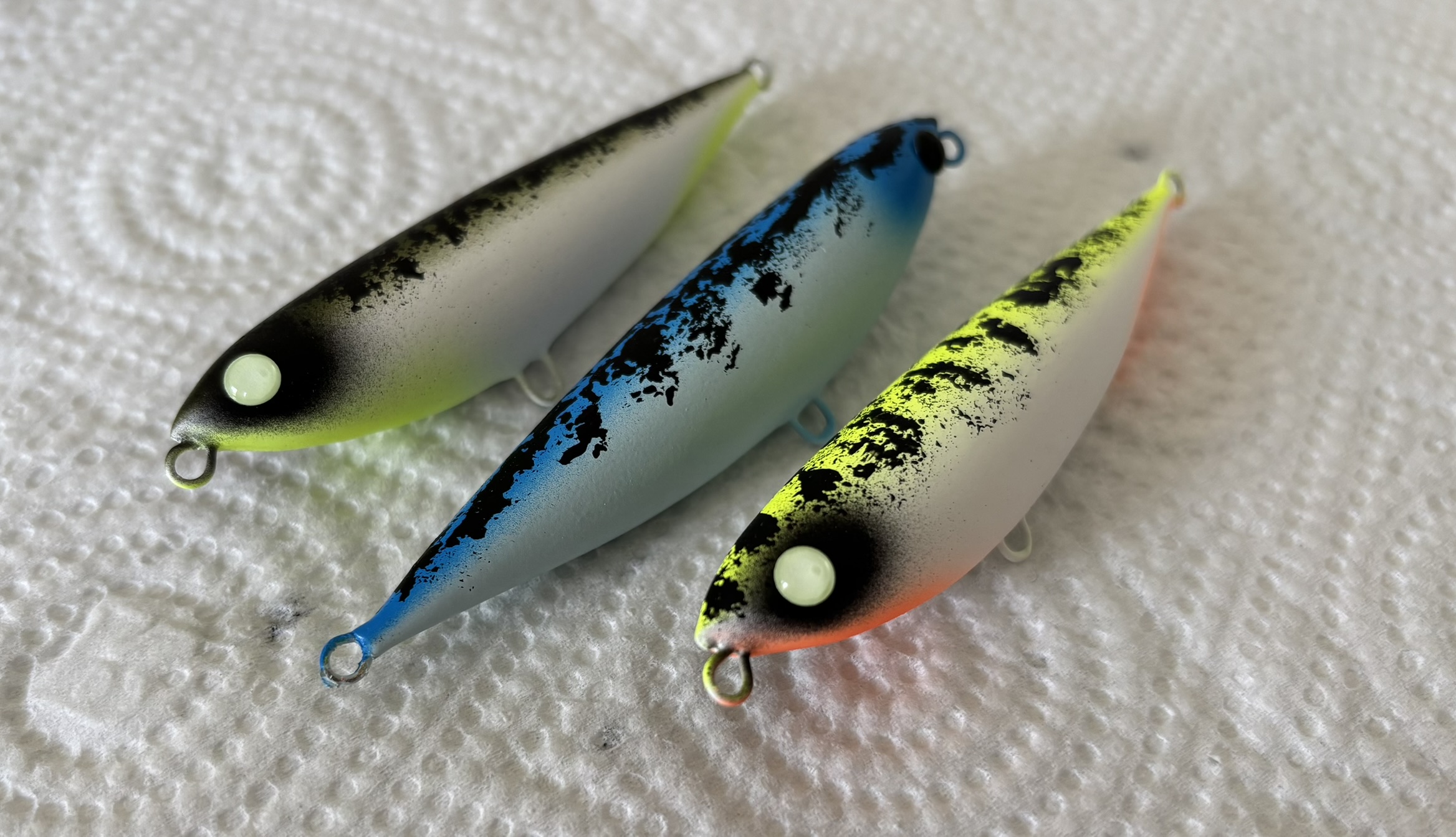 Próbáltam, kicsit más dizájnt fújni, mint amiket a sajátokra szoktam és célom volt, hogy az első halat én fogjam meg a saját darabommal, még mielőtt Zolika meghirdetné a többit.