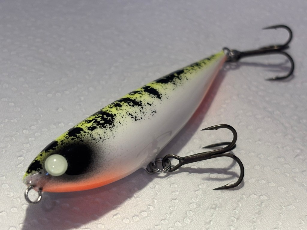 Brutális, igazi öblös hangú, szinte harcsás kapással marta le a képeken látható őn az egyedi festésű fahalat.