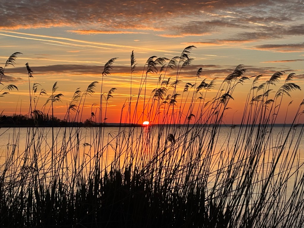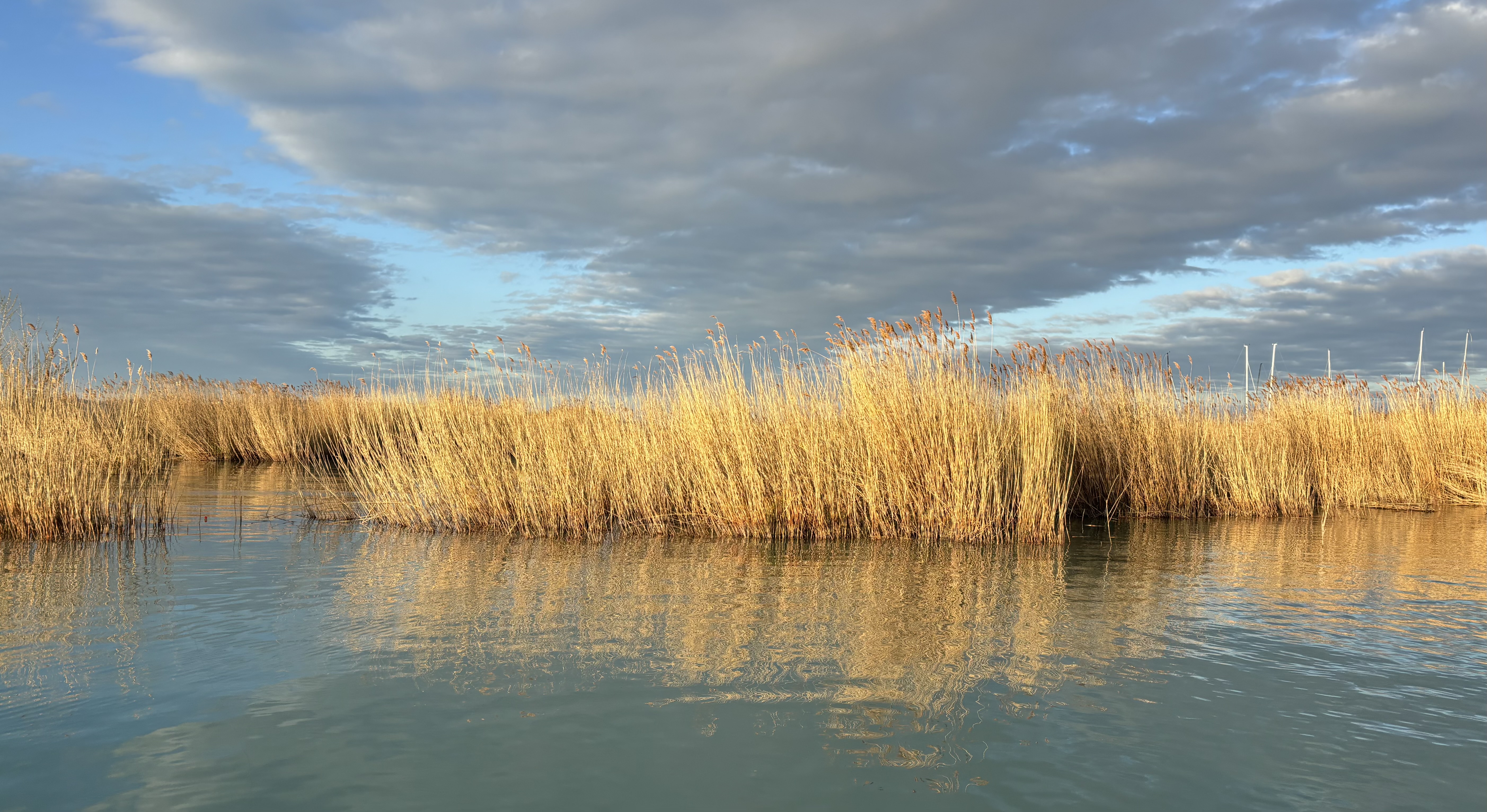 A hajnal csodás volt, a száraz nád arany színben pompázott a napsütésben.