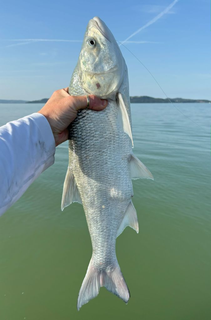 Volt olyan nap, hogy csak kicsiket fogtam, a balinok viszont az őrületbe kergettek a rablásaikkal. Ívott a küsz a kövön, zabálták a madarak és a halak is.