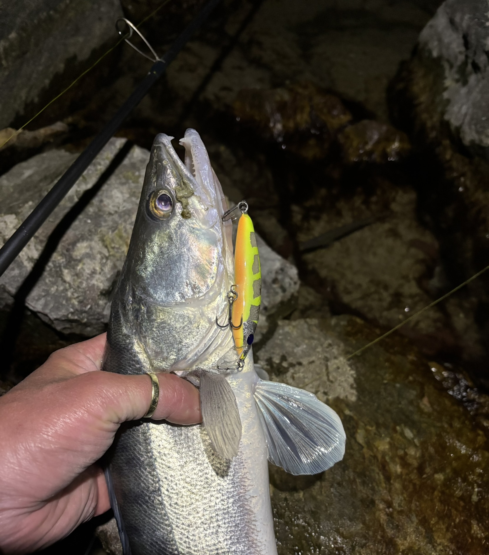 Majdnem beszartam, amikor az első orsótekerés után felrobbant a víz a vak sötétben. Gondolhatjátok, hogy harcsának hittem. 😀