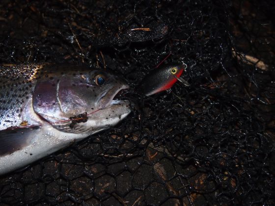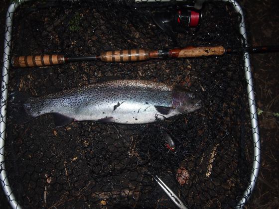 Szaniszló Zsolt a barátom a Sanno Baits műcsalik készítője már múlt héten jelezte felém, hogy kipróbálta a lureswappre készített csalimat és nagyon érzi a mozgásában a pisztrángot. Vigyem magammal mindenképpen! A lárva mellett ezt a csalit javasolta. Persze ez a csali pont otthon maradt, de ő bevetette szombaton a messzi északon. Egy kapásig jutott és azt írta a héten is ki akarja próbálni. Annyira jól kipróbálta, hogy néhány kapásból sikerült vele fogni egy Svéd szivárványos pisztrángot 45 centis hosszban. 🙂