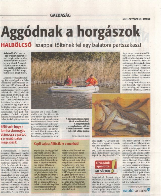 Írtam a Balatoni Halászati RT-nek, hogy egy különösen fontos ivóhelyet tesznek most tönkre, de nem kaptam választ! Írtam a Balaton-Felvidéki Nemzeti Parknak, de csak annyi választ kaptam, hogy hivatalos levélben megkeresték a vízügyet! Írtam a vízügynek, de onnan sem jött válasz! Írtam a Veszprémi Napló szerkesztőségének, de semmi sem történt!