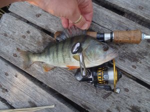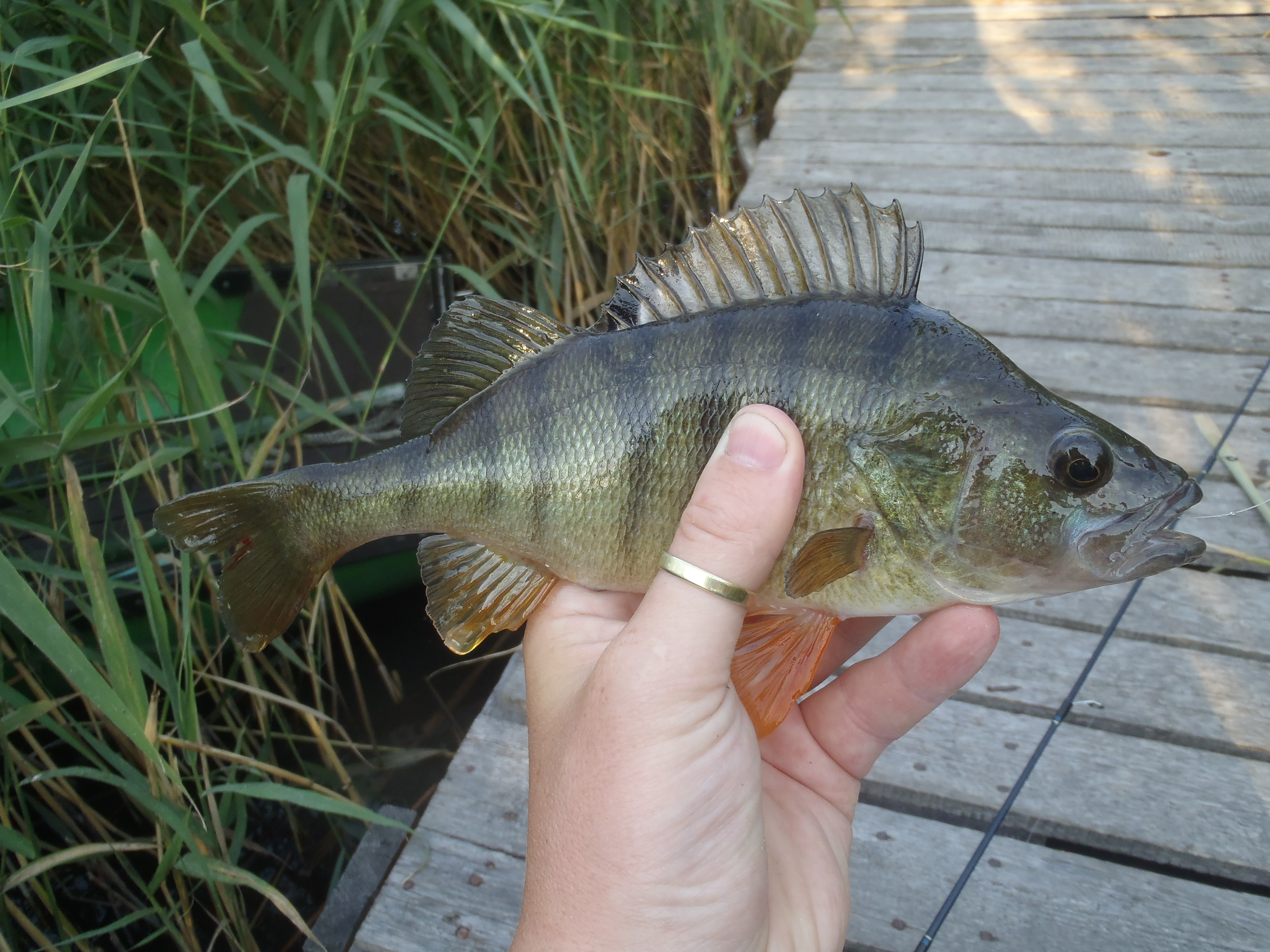 Strandolás előtt kaptam ma két órát. Csak az UL-t vittem a kövezésre, persze, hogy ott voltak a balinok, de a finom felszereléssel elérhetetlen távolságban. Nem bosszankodtam sokáig, kis sárga twisterrel próbáltam vörösszárnyút fogni a múltkori helyen. Első dobásra már sorozta is valami. Másodikra szép sügér jött, a társa a partig követte. Nimfa került a jigre, elsőre leverte valamim komoly hal, ami egyből a hínárba rohant, így lemaradt. Nem volt több kapás így odébbálltam. Újabb sügér jött kistwisterre. Amikor már visszafelé indultam megláttam a kő előtt egy gyönyörű vöröskeszeget. Elé ejtettem a nimfát és le is ütötte. Jó érzés látott halat elkapni, egy olyan csalival, amit az “ember fedezett fel”, hogy mennyi mindenre jó.