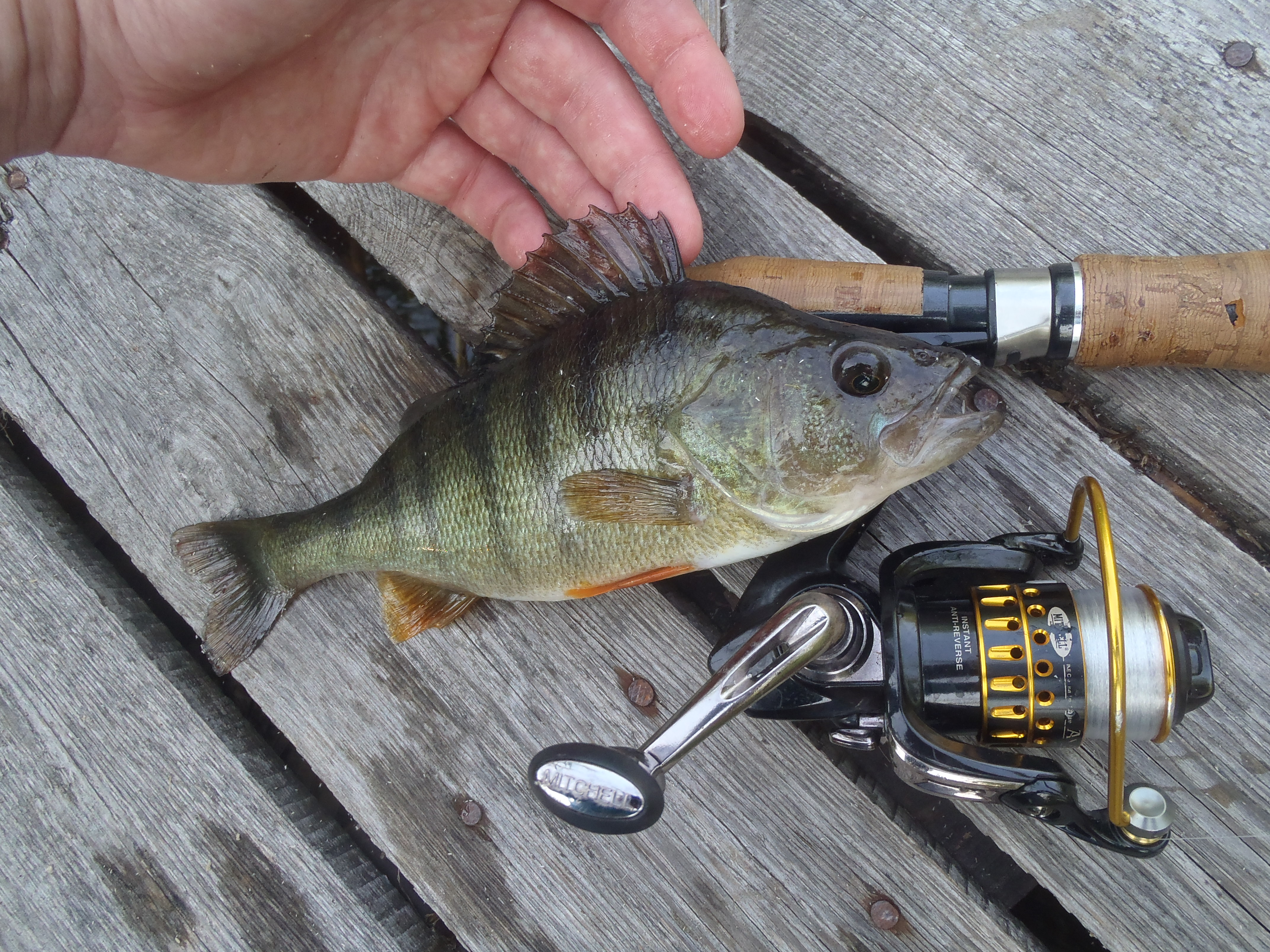 Visszaérvén vendéglőbe mentünk, ahol rántott harcsát ettem petrezselymes burgonyával, a feleségem egy szerb tálat, a gyerek pedig a szokásos rántott csirke – hasáb menüt választotta. Hazafelé csak úgy alsónadrágban megmártóztunk a kölyökkel, persze mikor vette észre a fürödni tilos táblát, fél óra lubickolás után. Folyamatosan raboltak a halak így gyorsan hazamentem a cuccért. 5 perc múlva már dobáltunk a kölyökkel. A halőrtől kérdeztem, mi van ha a gyerek is horgászni szeretne, elég rugalmas volt azt mondta, ne vegyek neki semmilyen, jegyet, bár a módszerről szó nem esett. Serényen dobálta a kis privivel az általam ajánlott kopytót! Egyszer csak kiáltotta: Apa, apa valamit akasztottam! Már pörgött is a felvevő! Szerintem a felvételhez nem igen kell komment! A gyereknél csak én voltam boldogabb, hiszen megfogta az első pergetett halacskáját!