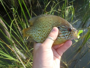 Hajnali egykor már talpon voltam, fél kettőkor már húztam a kő lábánál az SSR-t. Az ötödik dobásnál valahogy éreztem a halat, a végsőkig húztam, de már nem volt hová, és ahogy kiemeltem felrobbant a wobblerem mögött a víz! Lassan kezdtem beletörődni a dologba, de nem adtam fel. Nyolc kapásból két kölyöksüllő, nem nagy eredmény. Ráadásul az első egy csörgős FT nevisre jött, ami menthetetlenül a Súgó kövezésének rabja lett. Aztán jött még SSR-re egy kisbalin és három sügér, az egyik igen szép volt, és nagyon agresszíven védekezett.